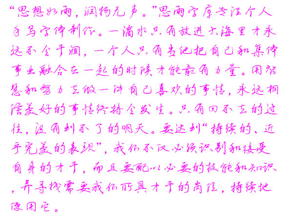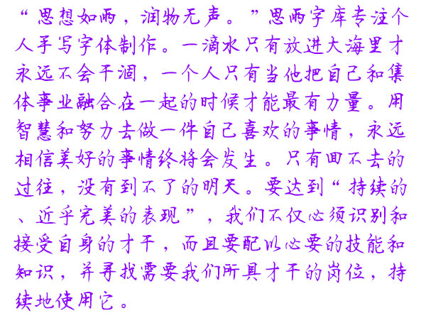 这里展示的是我们网站在试运营阶段,由用户免费提供给网站并由网站制作生成的个性手写字体图片。